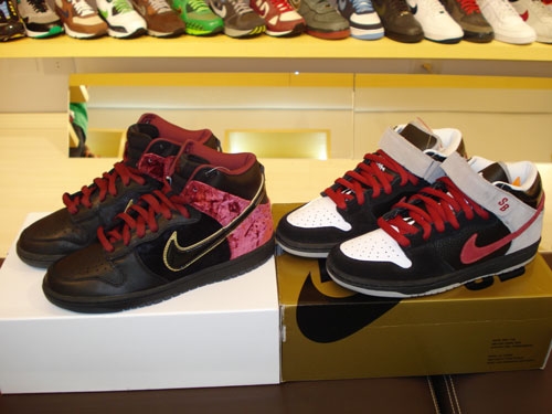 Nike Dunk Hi Sunday Blood Sunday e Nike Dunk Mid Guns "n Roses, ambos R$329,90.