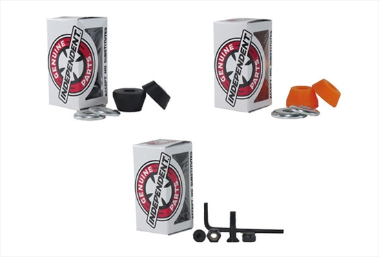 Acessórios Independent para seu skate: Amortecedores disponíveis nas durezas Medium 92A (Amarelo) e Hard 94A (preto), e parafusos de base Allen, disponível em 7/8" e 1" (7/8 de polegada ou 1 polegada). A qualidade da tradicional marca norte-americana agora nos acessórios do seu skate!