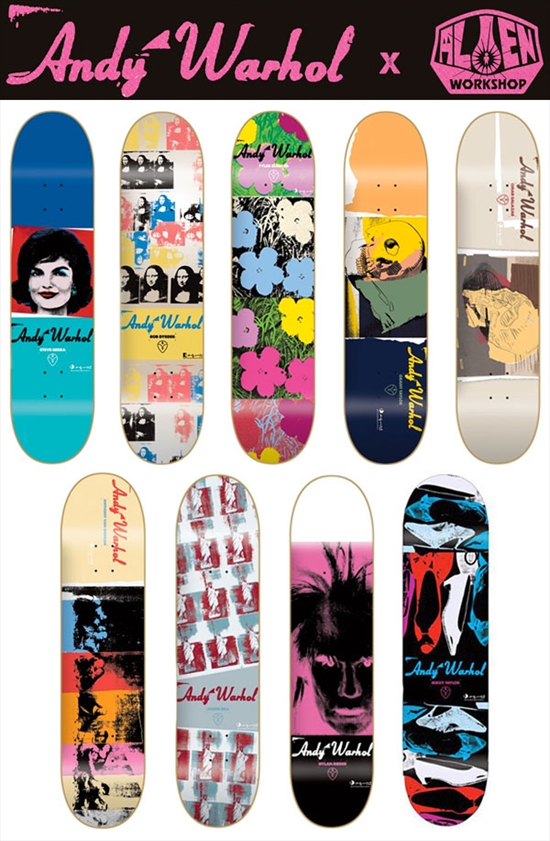 Pela segunda vez o sucesso da parceria entre Andy Warhol Foundation e Alien Workshop se repete. A segunda série que estampa algumas das gravuras mais famosas do artista norte americano nos modelos assinados pelos skatistas do time Alien Workshop , chega com exclusividade no Brasil `a Maze Skateshop: