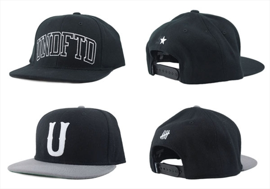 Para quem achou que era pouco, ainda tem mais Undefeated: São duas opções de bonés ajustáveis, um produzido pela Starter® e outro pela própria Undefeated. O primeiro, todo em preto, produzido pela Starter® traz uma das estampas mais clássicas da Undefeated bordada nos painéis frontais. O segundo, todo em feltro, mescla as cores preto, cinza, branco e verde, esta ultima na parte inferior da aba do boné!