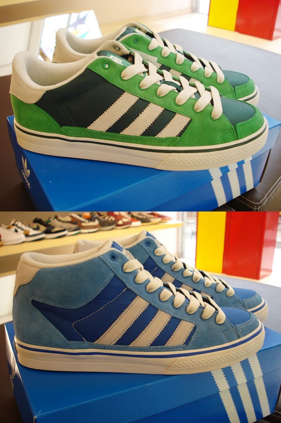 Adidas Superskate Vulcan! Combinação de camurça com nylon, nas cores azul (Superskate Vulc Mid) e verde (Superskate Vulc Low).