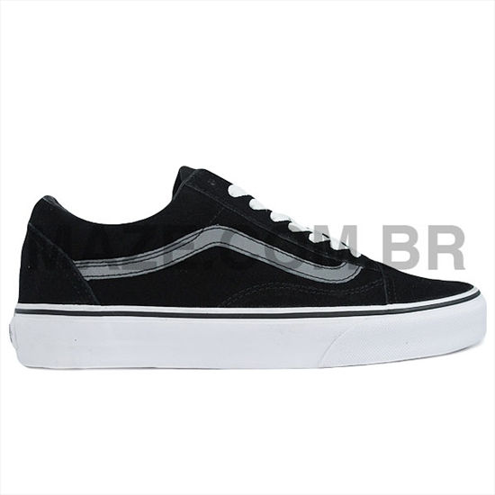 Um clássico que sempre traz um ar de moderno, esse é o Vans Old Skool, que desta vez chega em versão "Suede" com cabedal todo em camurça em preto, cor que também aparece no acabamento em couro, toda a parte interna e também no solado vulcanizado em borracha. Com cadarços em algodão branco, cor que também aparece na entre-sola em borracha de alta resistência, este Old Skool traz o Sidestripe, a famosa "listrinha", em couro fullgrain em tom de cinza.