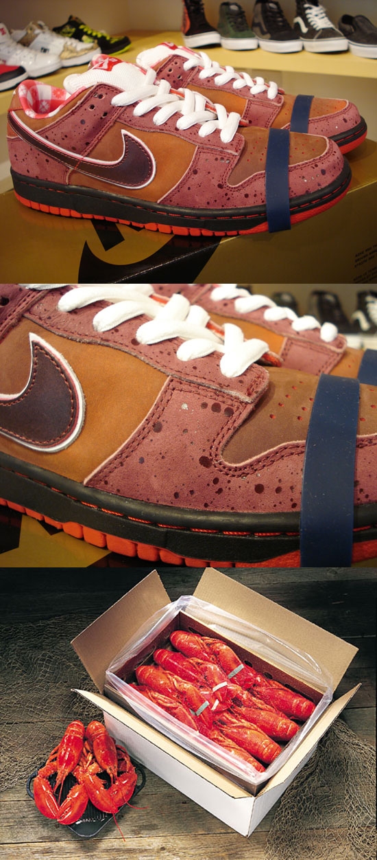 Com pouquíssimos pontos de vendas em todo mundo, o Lobster inova com relação ao tema e composição do tênis: todo em couro vinho e avermelhado, ele nos remete diretamente à cor do crustáceo, até os detalhes da casca e garras do animal. Já a parte interna faz alusão às toalhas usadas nos restaurantes de frutos do mar. E ainda mais: um cadarço extra preto da cor do solado.