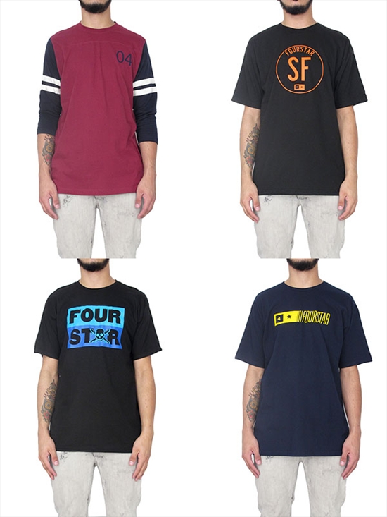 E já estão disponíveis nas lojas físicas e online novas estampas da Fourstar! São quatro modelos produzidos em tecido 100% algodão, três deles de manga curta e corte Regular Fit e um jersey de manga 3/4 muito estiloso da linha Sean Malto Signature. Imperdíveis!