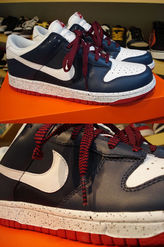 Dando continuidade às entregas de mid season da Nike Sport Culture, chega aqui na Maze Limited mais um modelo de Nike Dunk Low CL: em couro branco e azul marinho com o detalhe em mesh no painel lateral, esse Dunk se destaca pelos detalhes splatt na mid sole e pelo cadarço listrado vermelho e azul! Leva também um cadarço extra branco!