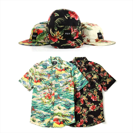 A estampa Plantlife não é a única que promete fazer sucesso nesta nova coleção HUF! Entre as novidades que acabam de chegar na Maze, um dos grandes destaques é a série "Hawaiian", que trazduas estampas lindíssimas disponíveis nas versões camisa de manga curta e 5 panel. Tendência do momento, as camisas produzidas em tecido premium 100% algodão lembram as clássicas camp shirts da década de 90, mas em uma releitura mais moderna com corte Slim Fit e mangas encurtadas. A estampa "Tropical" traz ondas, coqueiros, ukuleles e surfistas numa composição diferenciada e de cores vibrantes, enquanto a charmosa "Black Blossom" traz as clássicas flores havaianas em cor-de-rosa contrastando com o tecido preto. Também produzidos 100% em algodão, os bonés 5 Panel trazem as duas estampas, e ainda a versão "Cream Blossom" em colorway bege.