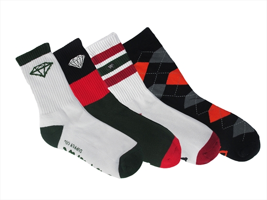 Confira quatro novos modelos de meia Diamond Supply Co. já disponíveis em todas as lojas Maze! Produzidas em algodão com leve mescla de elastano, as meias de cano alto possuem tamanho único e estampas diferenciadas, escolha a sua!