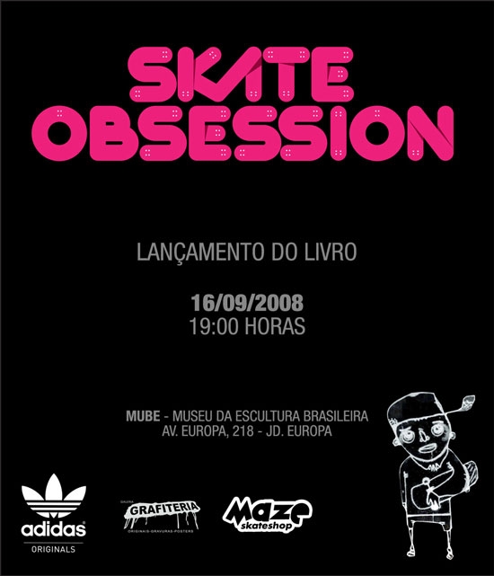 A expo "Skate Obsession", rendeu um livro, e a super festa de lançamnto acontece agora terça-feira, dia 16 de setembro apartir das 19:00 horas no Mube: Avenida Europa 218, Jardim Europa, São Paulo.