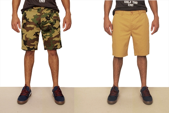 Duas novas bermudas Obey já estão disponíveis em todas as lojas Maze! Produzidas em algodão com leve mescla de elastano para garantir maior conforto e mobilidade à peça, são elas os modelos "Layover" em colorway cinnamon e a "Tracks Short" com estilosa estampa "Field Camo". Ambas possuem corte Slim Fit, fechamento por zíper, dois bolsos laterais e um bolso único traseiro. Confira a linha completa clicando no link "comprar" abaixo!