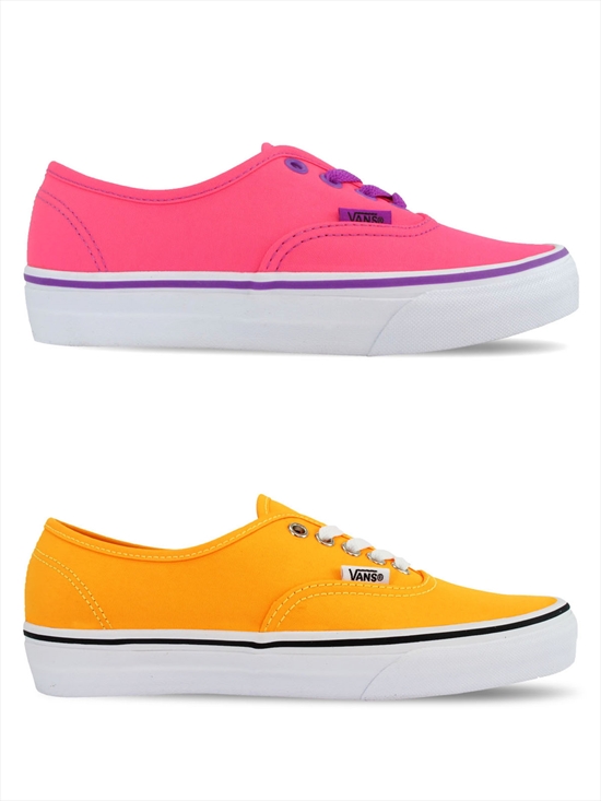 sempre com tradicional cabedal em canvas vem em vibrante colorway do "Neon Pack", perfeitos para o verão. Com opções em rosa e laranja, conta com a tag da marca e linha fina da entressola de borracha, que traz clássico solado vulcanizado da Vans, com design waffle que é uma de suas marcas registradas.