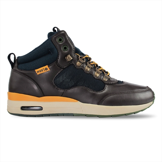 O diferencial da linha footwear da HUF, temos o sensacional HR-1 com cabedal em couro premium e detalhes em canvas e nylon. O calçado é'uma opção casual e mais confortável! Construção com acabamento impecável e conta com acolchoamento interno para melhor ajuste dos pés. Tem entressola de borracha sistema de amortecimento com capsulas de ar, traz ainda palmilha reforçada para absorção de impactos e para proteção e conforto. Mais uma exclusividade que você só encontra na Maze!