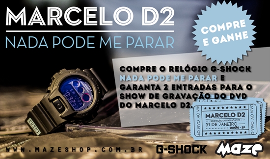 Promoção!!! Na compra do Relógio G-Shock Nada Pode Me Parar você garante automaticamente 2 entradas para o show de gravação do DVD ao vivo do Marcelo D2!
