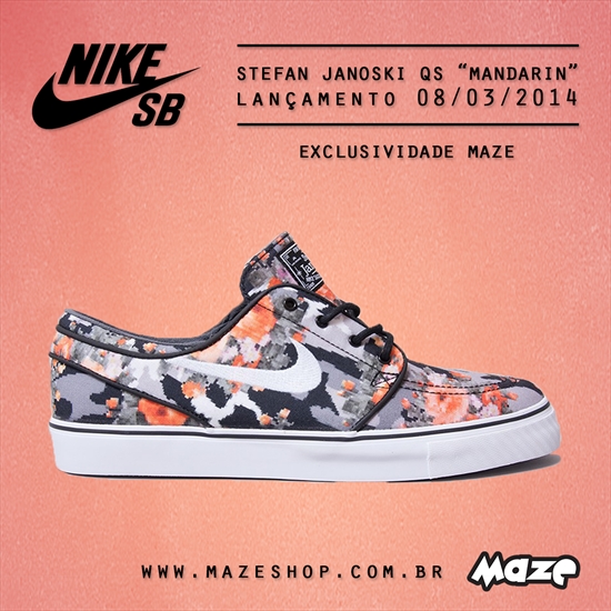 Olha só quem está chegando! Se estava faltando o Stefan Janoski Digi Camo "Mandarin" para sua coleção pode comemorar! Ele será vendido com exclusividade nas lojas Maze! As vendas irão começar no dia 08/03/2014 em todas as unidades Maze, inclusive online.