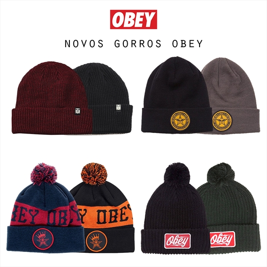 Conforme prometido, nova coleção Obey disponível! As primeiras novidades são os clássicos gorros da marca. Todos produzidos em material 100% acrílico, super confortáveis e de ótimo ajuste na cabeça! O modelo "Crowned" e "Gasoline" contam com pompom e duas opções de cores cada modelo. As opções sem pompom ficam por conta dos modelos "Ruger" e "luxury" também com duas opções de cores cada, com opção de usar dobrada e desdobrada, e detalhe para etiqueta com o famoso logo da marca.