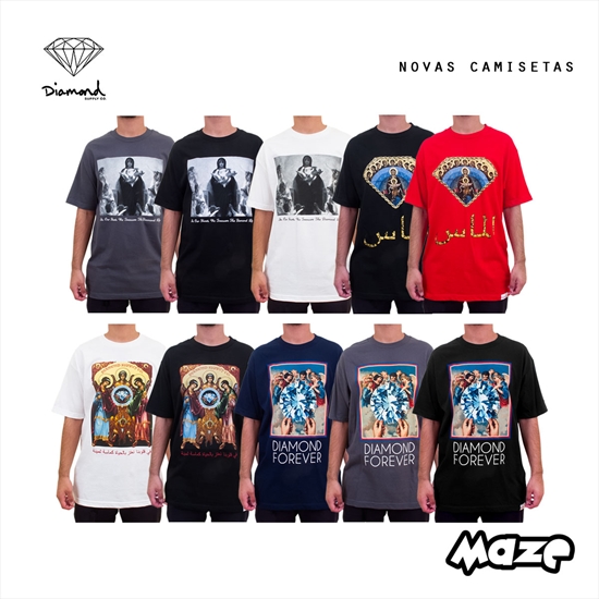 Começando a coleção de camisetas da Diamond, temos uma serie de modelos que mesclam a imagem de Santos com o Diamante! São quatro modelos incriveis e diferentes com duas ou mais variações de cores. Aproveitem quantidades limitadas!