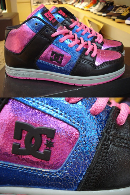 O Manteca II traz a combinação do couro preto liso que aparece no cabedal, painel lateral e calcanhar, com o couro craquelado metalizado pink e azul! A midsole aparece na cor cinza e a sola pink. O DC Manteca II leva também um cadarço extra na cor preta!