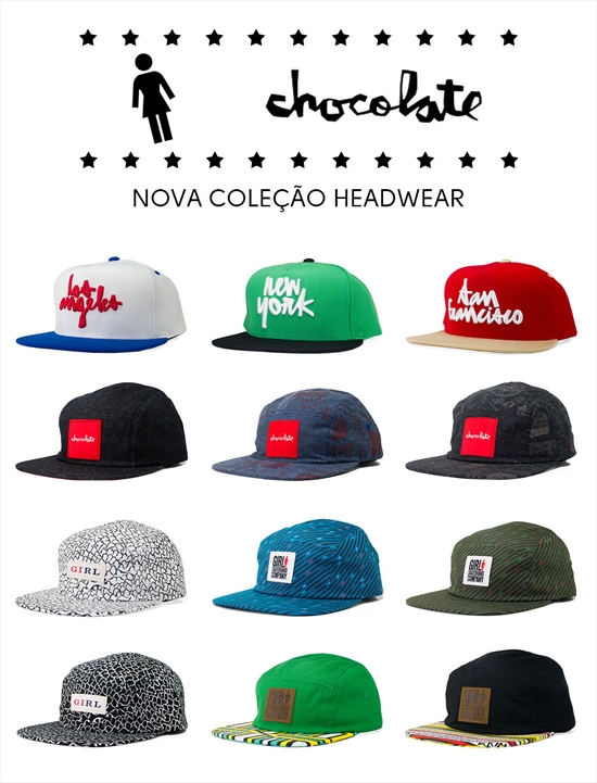 Nova coleção Girl & Chocolate já disponível em todas nossas lojas! Começando essa incrível coleção, temos esses estilosos bonés da Girl & Chocolate, são 12 modelos diferentes variando entre 5 panel e snapback. Corra e garanta já o seu!