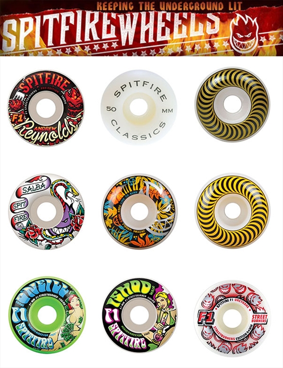 Aproveite e dê um "up" em seu skate, acabam de chegar na Maze novas rodas Spitfire! Quem não poderia ficar de fora é o modelo "Classics", moldadas em poliuretano de alta performance, e estão disponíveis nos tamanhos 50 mm e 55 mm com dureza 99DU. Uma das preferidas dos streeteiros, a F1 "Streetburners" chegam em novos modelos assinados pelos team riders da marca como Andrew Reynolds, Ishod Wair entre outros, com tamanhos entre 50 mm e 56 mm e dureza de 99DU e 100DU. A roda Spitfire F1 é muito indicada para a modalidade street e transições, desempenha boa velocidade tanto no concreto como na madeira. Confira e garanta já a sua!