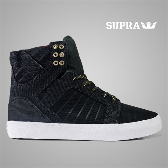 cabedal em lona, possui cadarços de algodão, forro interno estampado e solado vulcanizado branco.