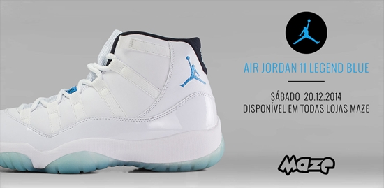 O clássico Air Jordan 11 Retro "Legend Blue" estará disponível em todas as lojas Maze, inclusive online à partir de amanhã (20/12/2014).