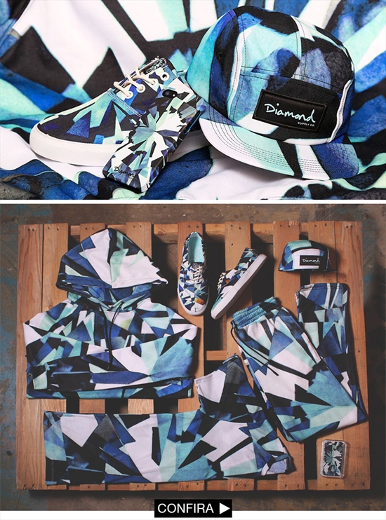 E acaba de chegar na Maze a tão esperada coleção Diamond Supply! Começando com essa linda coleção temos o "Simplicity Pack" composto por calça, bermuda, camiseta, moletom, boné, case para iphone, guarda-chuva e tênis! As peças possuem estampa "Simplicity" que remete a um diamante e são hella estilosas. Estão disponíveis em todas as lojas inclusive online, corra e garanta já o seu!