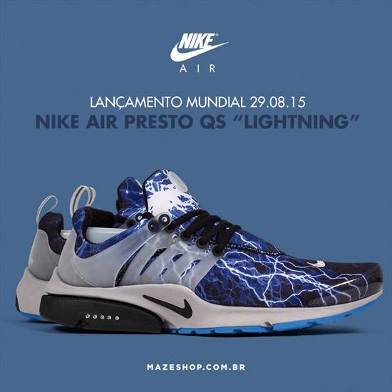 Esta semana teremos mais um relançamento imperdível: o Nike Air Presto QS "Lightning" OG Retro. O sneaker apresenta estampa de relâmpagos em tons de preto e azul. A moderna e minimalista silhueta do Air presto chega em uma nova execução com cabedal em malha respirável na cor branca, com linda estampa "Lightning" de raios. Diferente da maioria dos tênis, o Nike Air presto QS é apresentado em tamanhos de camiseta, formatos que ajudaram a tornar o modelo popular no seu primeiro lançamento. Os tamanhos de camisetas faziam referência à proposta do tênis, que era inspirado em vestuário e considerado uma “camiseta para os pés”.