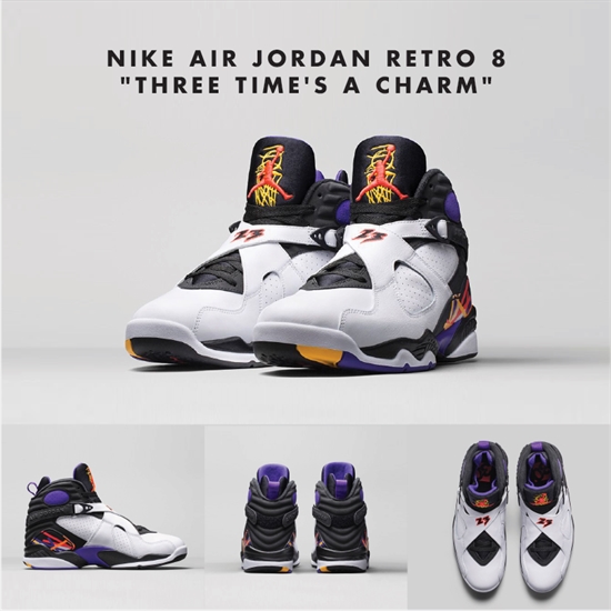 Michael Jordan completou sua primeira "three-peat" em 1993 contra o amigo de longa data Charles Barkley e seu esquadrão do Phoenix Suns. Os Bulls iriam consolidar seu lugar na história com uma das maiores corridas de todos os tempos. Agora quase 23 anos mais tarde, Jordan Brand apresenta o Air Jordan 8 "Three-Peat" com lançamento programado para dia 14/11!