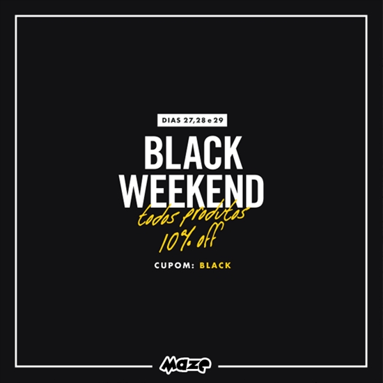 O BLACK WEEKEND MAZE começa nesta sexta-feira (27/11) e termina no domingo (29/11). Lembrando que a promoção é válida em TODAS as nossas lojas, inclusive online!
