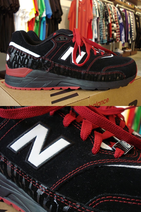 Intiramente construído com materiais sintéticos, o 820BR traz o nobuck preto com as costuras vermelhas em todo o cabedal. Detalhe das inscrições que circundam o tênis: palavras que remetem ao running (performance, physical,desire, action etc) aparecem aqui como uma homenagem ao modelo.