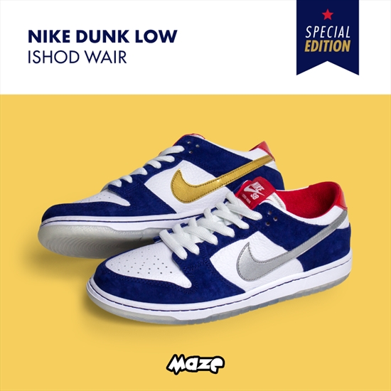 Nike SB Dunk Low Pro Ishod Wair redesenhado para o pro skater Ishod Wair, que caracteriza uma silhueta clássica e de perfil baixo, sola flexível para apelo vintage e boardfeel incrível. Modelo clássico chega em mais uma colorway, dessa vez nas combinações de azul e branco com detalhes em prata e dourado que garante todo estilo ao tênis!