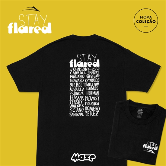 Stay Flared é a incrível união entre duas grandes marcas Lakai e Emerica, que rendeu uma tour com a equipe das marcas pelos Eua. Stay Flared vem da abreviação dos videos mais famosos das marcas, sendo eles Stay Gold da Emerica e Fully Flared da Lakai. Além da incrível tour, as marcas lançaram esse modelo de camiseta com o logo da tour estampado na frente e o nome dos atletas nas costas. A camiseta estara disponível exclusivamente amanha (05.03) em todas lojas Maze, corra e garanta a sua!