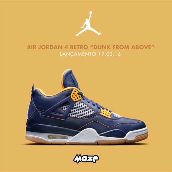 Um dos sneakers responsáveis por disseminar a cultura dos sneakerheads pelo mundo, o Jordan 4 será relançado na versão "Dunk From Above" com exclusividade na Maze Augusta e Online! O sneaker mescla couro premium azul, com detalhes em amarelo no forro interno, solado com tecnologia Air e tags.