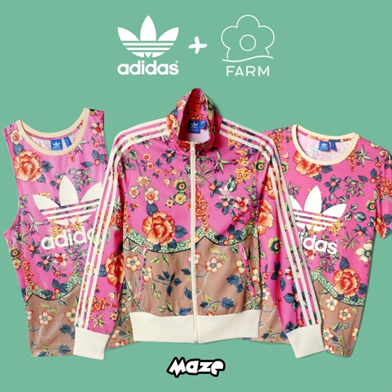 Desenhada em colaboração com a Farm, a coleção Adidas x Farm conta com um toque de tropicalismo misturado com romantismo. A vibrante estampa floral foi inspirada na movimentada feira de antiguidades do Lavradio, no Rio de Janeiro. A coleção está disponível somente na Maze Augusta e Online!