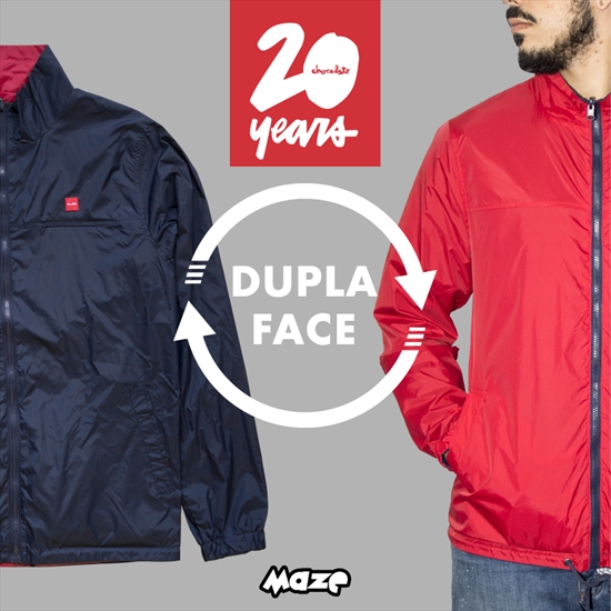 Amanhã (05.05.16) temos lançamento em comemoração aos 20 anos da Chocolate. Jaqueta windbreaker dupla face, produzida em nylon com corte regular fit, a jaqueta possuí bolsos nas laterais e na altura do peito, além do patch com o clássico logo da marca. A jaqueta estará disponível amanhã em todas lojas inclusive online!