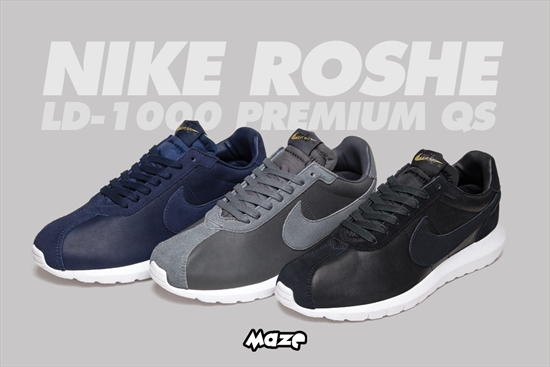 O modelo Nike Roshe LD-1000 Premium QS foi confeccionado em couro com três elegantes colorways, o preto, azul e o cinza. Possuem o logo "Blue Ribbon Sports", o antigo nome da marca antes de virar a poderosa Nike.