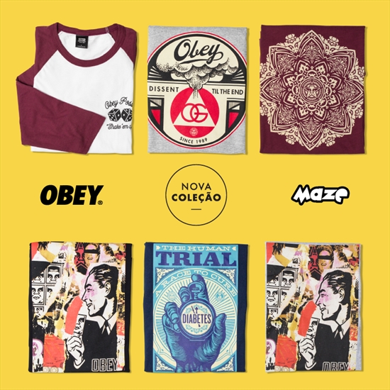 Nova coleção Obey disponível AGORA em todas as lojas. Pra começar são 5 modelos de camisetas contendo uma Raglan, todas com duas opções de cores, corte regular fit, tecido premium e estampas super exclusivas. Confira a coleção completa em uma de nossas lojas físicas ou online!