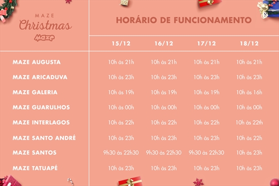 Maze Christmas: Horário de Funcionamento!