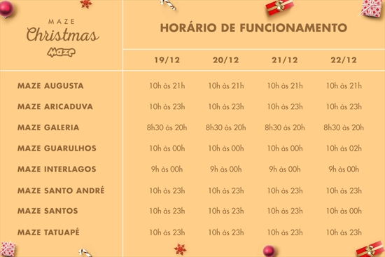 Confira os horários de funcionamento de nossas lojas e programe-se para comprar seu presente de natal!