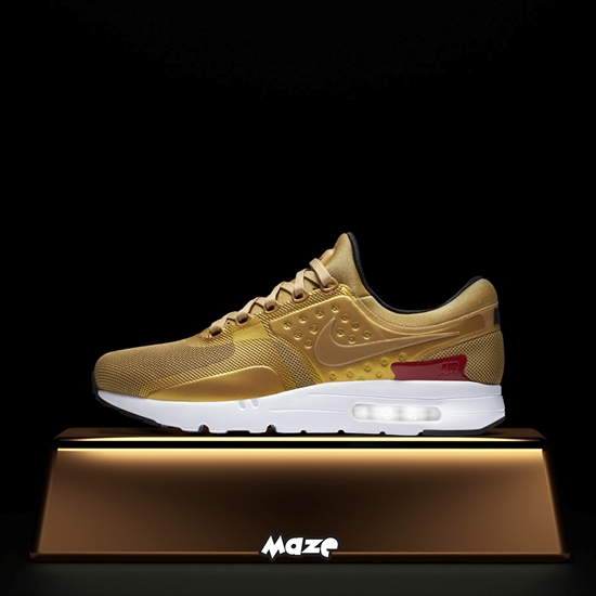 Um dos primeiros esboços de Tinker Hatfield, principal criador da familia Max, o Air Max Zero não era possível ser produzido na época por possuir um conceito tecnológico muito a frente do seu tempo. Só em 2015, após muitos avanços na industria de tênis, ele ganhou vida e com isso indica que muitas variações ainda estão por vir. Compondo o pack de 20 anos do Air Max 97, chega também o Air Max Zero “Metallic Gold”, com tecnologia atualizada de Phylon no solado para o manter leve e confortável.