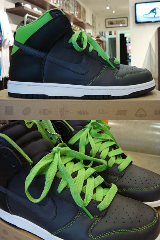 Dessa vez todo em couro liso preto, chumbo e com detalhes em verde. O mesmo tom de verde aparece também nas costuras do toebox,forro e no cadarço.