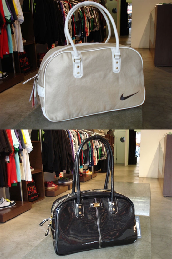 Dois estilos diferentes, temos uma bolsa menor, básica em couro envernizado preto com detalhes dourados e a outra um pouco maior para as garotas que levam mais coisas: em canvas metalizado com detalhes em couro liso branco ao redor do zíper, na alsa e nas laterais. Ambas trazem bolsos internos com zipers: