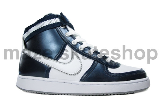 Nike Vandal High ainda é um modelo que poucas vezes apareceu por terras brasileiras e que dessa vez traz em couro liso a combinação das cores branca e azul metálico. Sua marca registrada, o velcro (que não é fixo no tênis) traz detalhes em azul marinho: