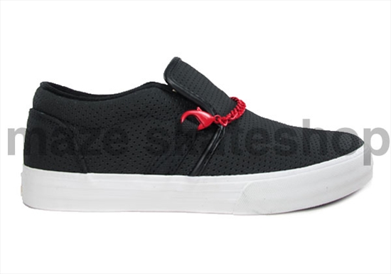 SUPRA Cuban 1.5 TUF Black traz ainda uma correntinha vermelha que pode ser presa nas duas extremidades do calçado, além de um cadarço em couro extra na cor preta (para imagens com o cadarço em couro, clique