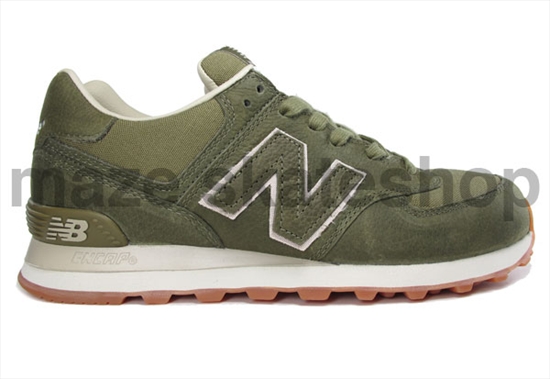 Nova colorway do 574 que reúne canvas (toebox), nobuck e couro na cor oliva. O New Balance
