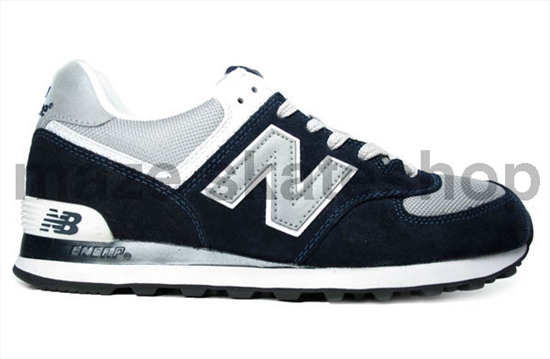 M574BGS traz camurça azul marinho e detalhes em cinza em nylon no toebox e região do collar. Além do cadarço cinza, esse NB 574 traz também um cadarço extra branco: