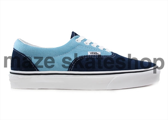 Os clássicos Vans Era são sempre um sucesso e desaparecem de nossas prateleiras. Super básico e com ótimas combinações de cores, a silhueta traz dois tons de azul: azul marinho na camurça e azul claro em canvas: