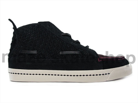 Mais uma nova silhueta da Nike Sportswear para essa coleção que já leva o nome de Holiday '10. Com muito estilo e acabamento impecável, o Nike Aina Chukka traz o cabedal em camurça preta com o detalhe trançado no painel lateral. Cano médio, com o toebox em couro liso vinho com costuras sobressalentes, esse é a silhueta 'Chukka' da Nike Sportswear: que nos lembra as botas e sapatos, com uma cara ultra moderna. Cadarço em couro e solado vulcanizado que traz estampado pequenos losângulos em preto: